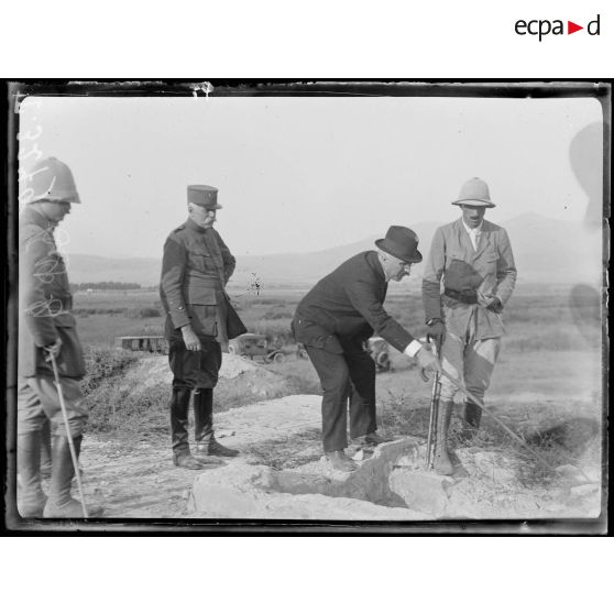 Zeitenlik. Visite de Monsieur J. Godart et du Général Sarrail au tumulus de Sedès.