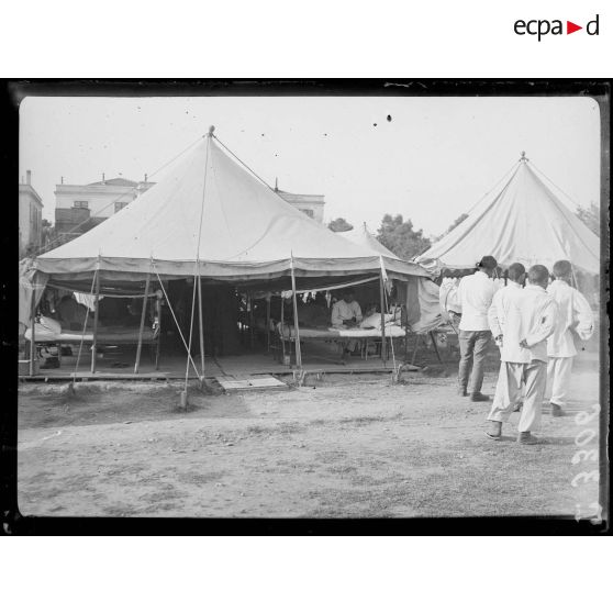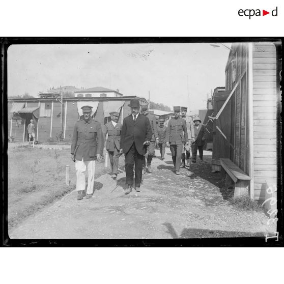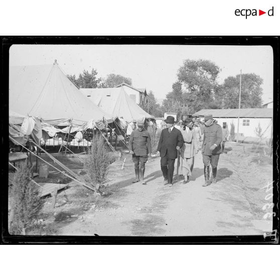 La visite des hôpitaux de Zeïtenlick par le sécretaire d'Etat aux Service de santé Justin Godart et le général Sarrail.