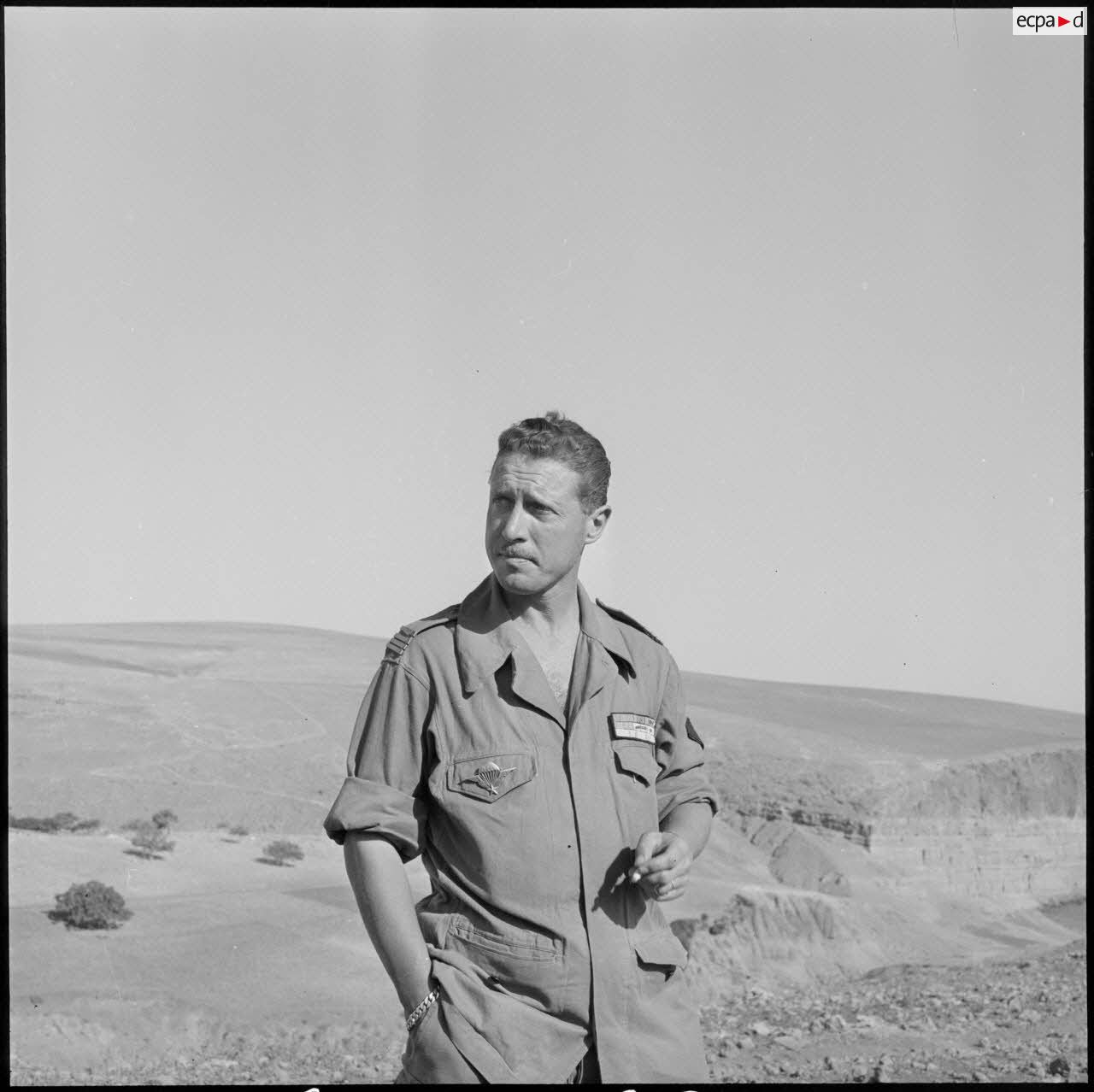 - Portrait d'un fusilier marin montant la garde avec son pistolet-mitrailleur à la frontière algéro-marocaine.
