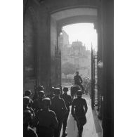 Cérémonie militaire à Ouargla en présence du ministre du Sahara Max Lejeune. Devant le musée…