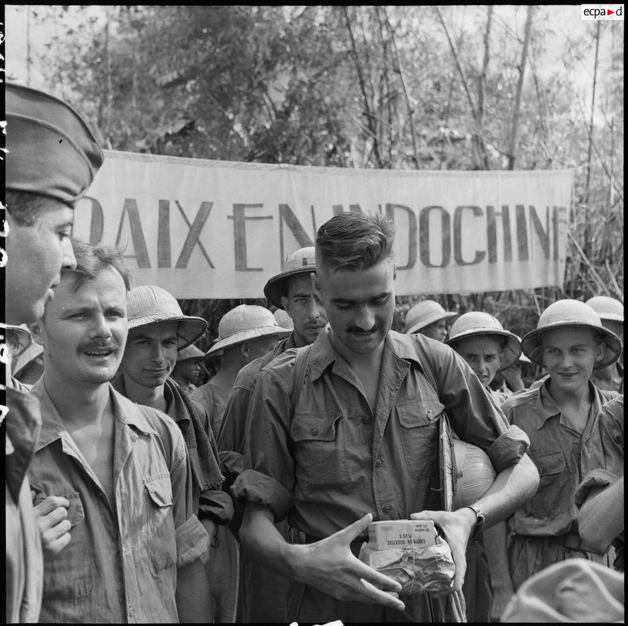 Pierre Schoendoerffer prend son envol pour l’Indochine à l’été 1952. C’est le début d’une aventure humaine extraordinaire dont il ne soupçonne pas les conséquences futures sur sa vie et sa carrière. S’il lui arrive d’accompagner occasionnellement de hautes personnalités politiques ou militaires lors de leurs déplacements, comme le roi du Cambodge Norodom Sihanouk, c’est avec les soldats qu’il passe le plus clair de son temps. Caméra à l’épaule, il les suit partout, s’exposant aux mêmes risques qu’eux, parcourant des kilomètres à leurs côtés dans la jungle et la plaine, et traversant des rivières, comme le montre une célèbre photographie.